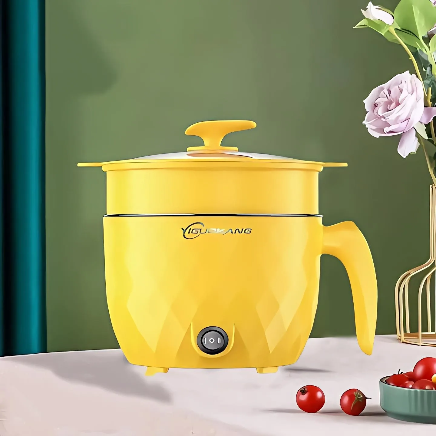 Multifunctional non-stick mini rice cooker and electric frying pan.